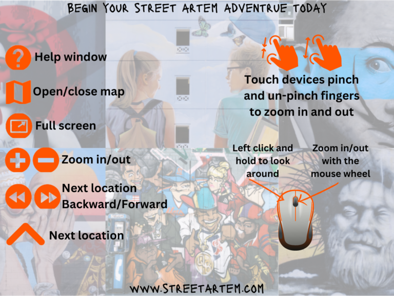 - Map navigation: Expand the left menu options at the bottom of the screen and select the maps icon to navigate through the Winston Salem street art.